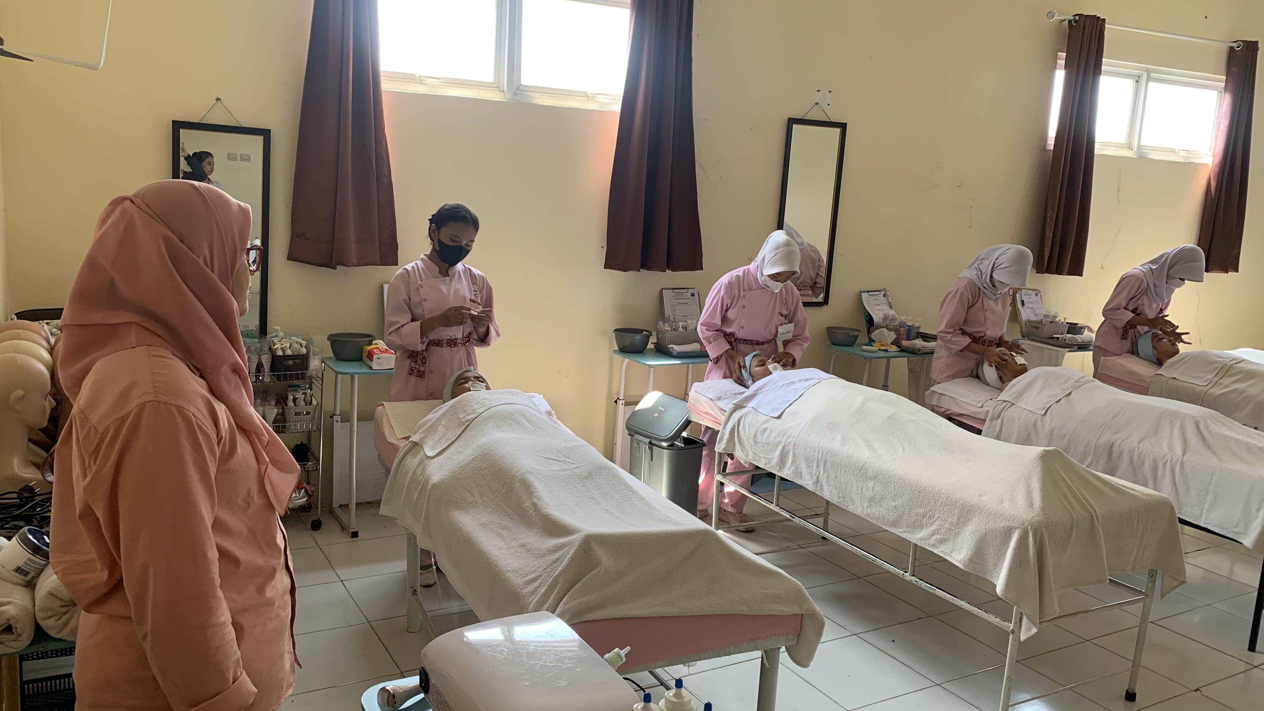 Tempat praktik berstandar industri, lengkap dengan peralatan kecantikan profesional. Siswa belajar merawat dan mempercantik kulit dengan teknik terkini agar siap terjun ke dunia kecantikan profesional.
