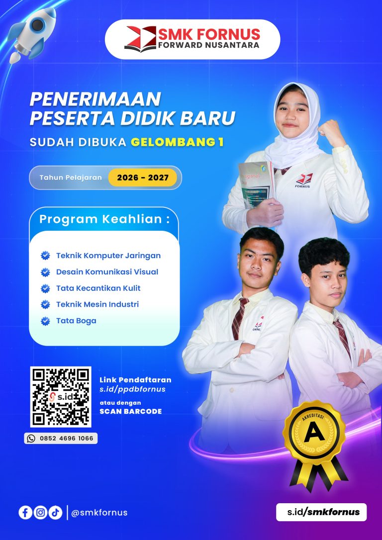 “Wujudkan masa depanmu bersama SMK Forward Nusantara. Daftar sekarang dan raih kesempatan belajar di sekolah dengan fasilitas lengkap dan jurusan favorit dunia industri!”